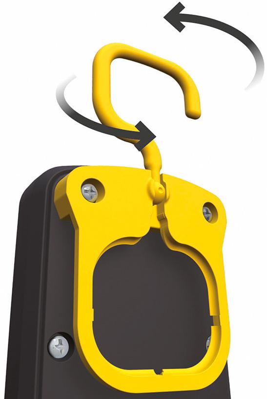 • Magnet und ausklappbare, um 360° frei drehbare Aufhängevorrichtung