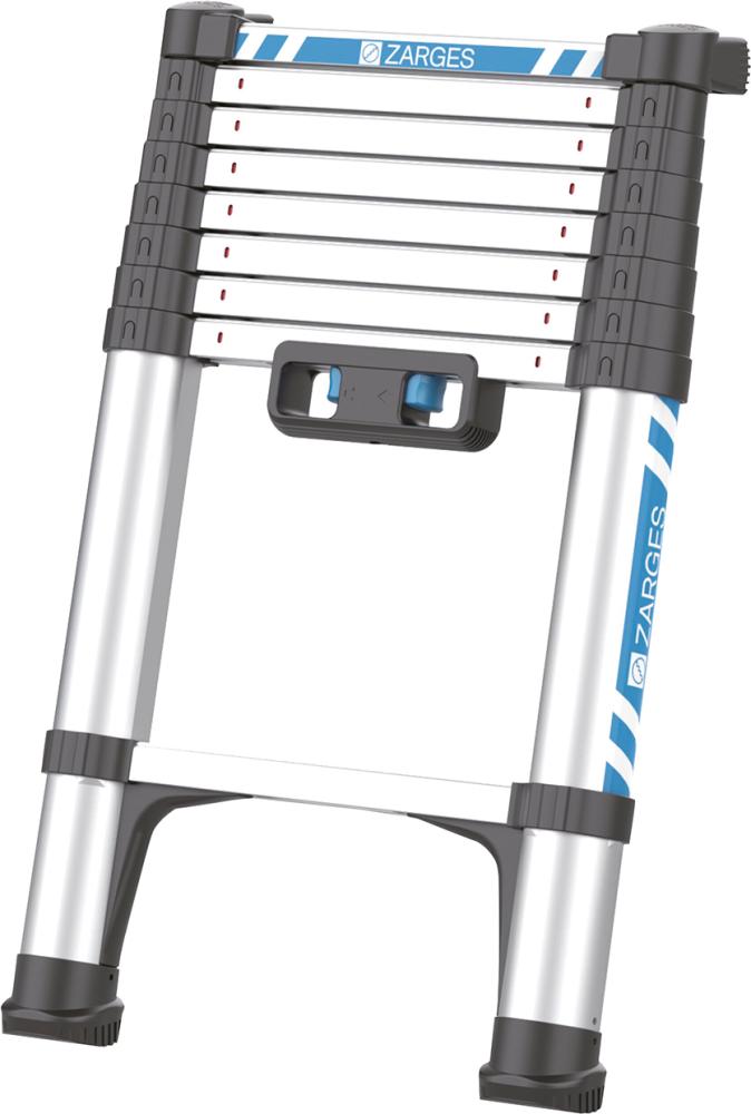 Teleskop-Sprossen-Anlegeleiter Compactstep L • Material: Aluminium, eloxiert • Sprossen: geriffelt, 40 mm tief, sicherer Stand, bequemer Auf- und Abstieg • Platzsparend zusammenschiebbar für den Transport • Entspricht EN 131-6 • Sprossenabstand: 300 mm • Belastung: 150 kg Hersteller: ZARGES GmbH, Zargesstraße 7, 82362 Weilheim, DE, +498816870, zarges@zarges.de