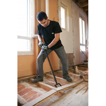 • MEHR BREITE: Der doppelte Griff ermöglicht eine bessere Unterstützung im Vergleich zu anderen Hebestangen. Es ermöglicht auch eine Demontage ohne zu brechen. Reißt die Böden auf, baut die Paletten ab, hebt die Tischlerei. Seine große Höhe (mehr als ein Meter) ermöglicht ein ermüdungsfreies Arbeiten im Stehen. Metallstruktur, Nagelzieher, Griff aus zwei Materialien, gehärtete Gabeln (55 HRC).
