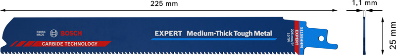 EXPERT Medium-Thick Tough Metal S1155HHM Säbelsägeblatt, 3 Stück