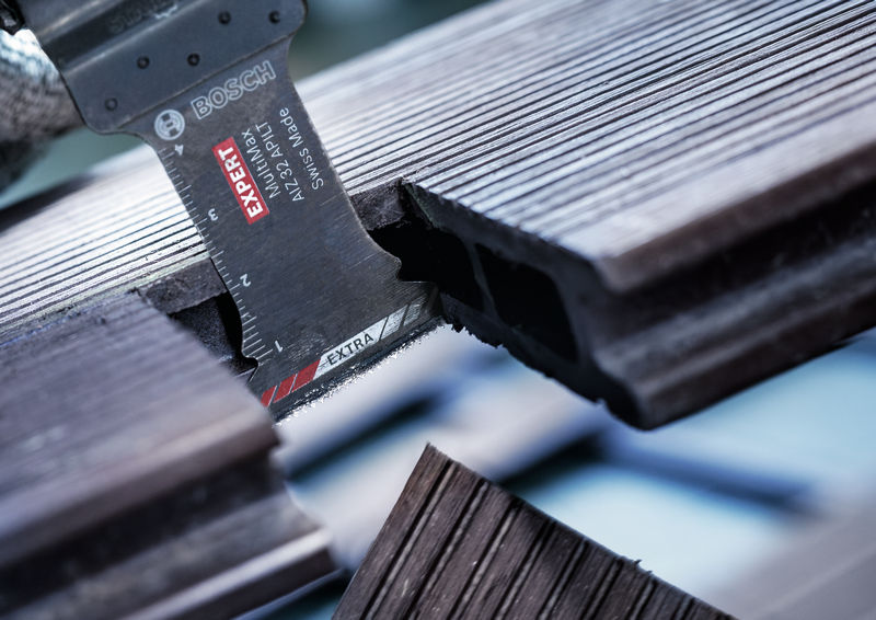 Lange Lebensdauer beim Schneiden von Holz mit Nägeln und abrasiven Materialien! Zusätzliche Beschichtung macht Carbide härter Ein Blatt für Multifunktionswerkzeuge, mit dem du hervorragende Schnitte in verschiedensten Materialien machen kannst, erleichtert das Arbeiten erheblich. Darum haben wir das EXPERT AIZ 32 APILT MultiMax-Tauchsägeblatt entwickelt. Mit ihm kannst du präzise Schnitte und Tauchschnitte in Holz mit Nägeln, Ziegelstein und andere Verbundwerkstoffe und abrasive Materialien machen – effizient und mühelos. Das dünne, lange Blatt des EXPERT AIZ 32 APILT MultiMax-Blatts ist außergewöhnlich langlebig und ermöglicht Tauchschnitte mit einer Tiefe von bis zu 45 mm. Die konischen Carbide-Zähne mit dem innovativen Curved-Tec-Profil sind robust und scharf. Sie sind dafür ausgelegt, Späne effizient zu entfernen und Hitzeverfärbungen zu reduzieren – insbesondere beim Schneiden in Holz. Überragende Lebensdauer dank Bosch Carbide Technology