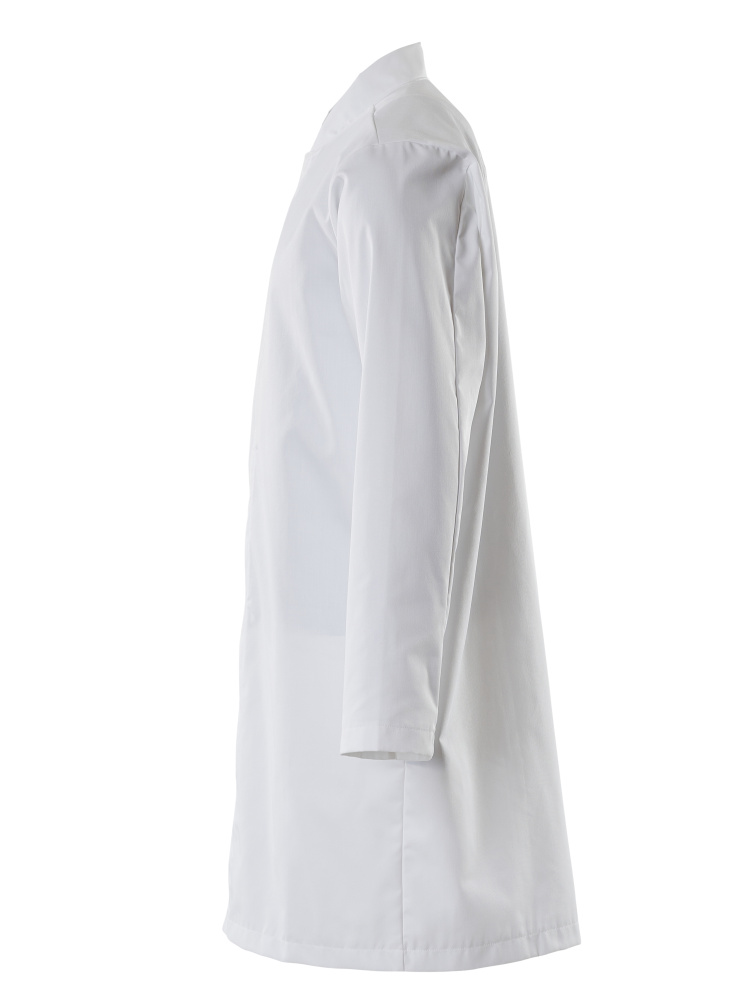 Verschluss mit verdeckten Druckknöpfen. Druckknöpfe aus Metall. Einsetzen von Namensschildern sowie HF-Chip und UHF-Chip möglich. Farbmarkierung für jede Größe. Für Industriewäsche geeignet. OEKO-TEX® STANDARD 100. ProWash® - EN ISO 15797. HACCP DIN 10524. HACCP