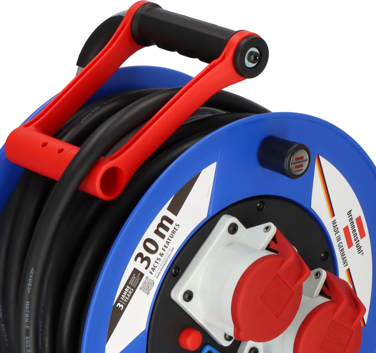 Die Garant CEE IP44 Industrie-/Baustellen-Kabeltrommel mit 30m Kabellänge von Brennenstuhl eignet sich ideal für den Baustelleneinsatz und den Einsatz im Freien. Sie überzeugt außerdem durch folgende Eigenschaften: