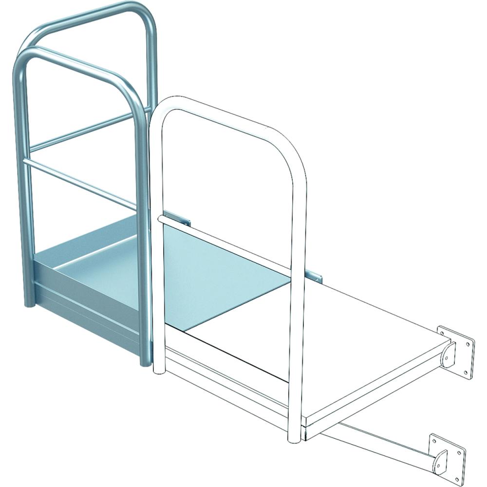 Das Grundpodest für Steigleitern besteht aus einem Gitterrost-Belag und 2 Anbaukonsolen.