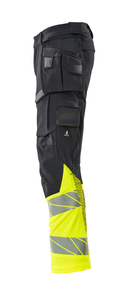 Hose mit Hängetaschen, ULTIMATE STRETCH Hose Größe 76C46, schwarzblau/hi-vis gelb
