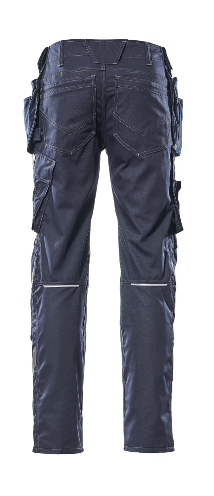 Einfarbig. Leichte Meterware. Dreifache Kappnähte an den Beinen und im Schritt. Niedrige Taille und formgeschnittener Bund. Hosenbeine sind ergonomisch geformt. Hängetaschen aus CORDURA® Gewebe, verstellbar, mit extra Tasche für Werkzeug. Gürtelschlaufen. D-Ring. Hosenschlitz mit Reißverschluss. Werkzeugschlaufe am Bund. Geräumige Vordertaschen - eine davon mit leicht zugänglicher Handy-Tasche. Gesäßtaschen, verstärkt. Hammerschlaufe, verstellbar. Schenkeltasche mit Handy-Tasche, Patte und verdeckten Druckknöpfen. Zollstocktasche, verstärkt. Stifttasche. Knietaschen aus super strapazierfähigem CORDURA® (1000 D), höhenregulierbar und mit Patte sowie Eingriff von oben. Reflexeffekte. Zu diesem Modell empfehlen wir folgenden Knieschutz: 00418-100, 00718-100, 50451-916 oder 20118-915. Zertifiziert zusammen mit Kniepolstertyp SHORT oder LONG gemäß EN 14404. OEKO-TEX® STANDARD 100. ProWash® - EN ISO 15797