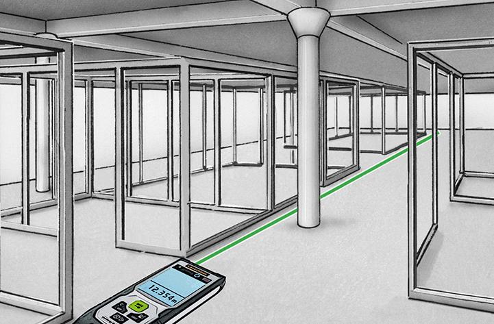 • Punktgenaues Messen mit Laser zur Ermittlung von Längen, Flächen und Volumen