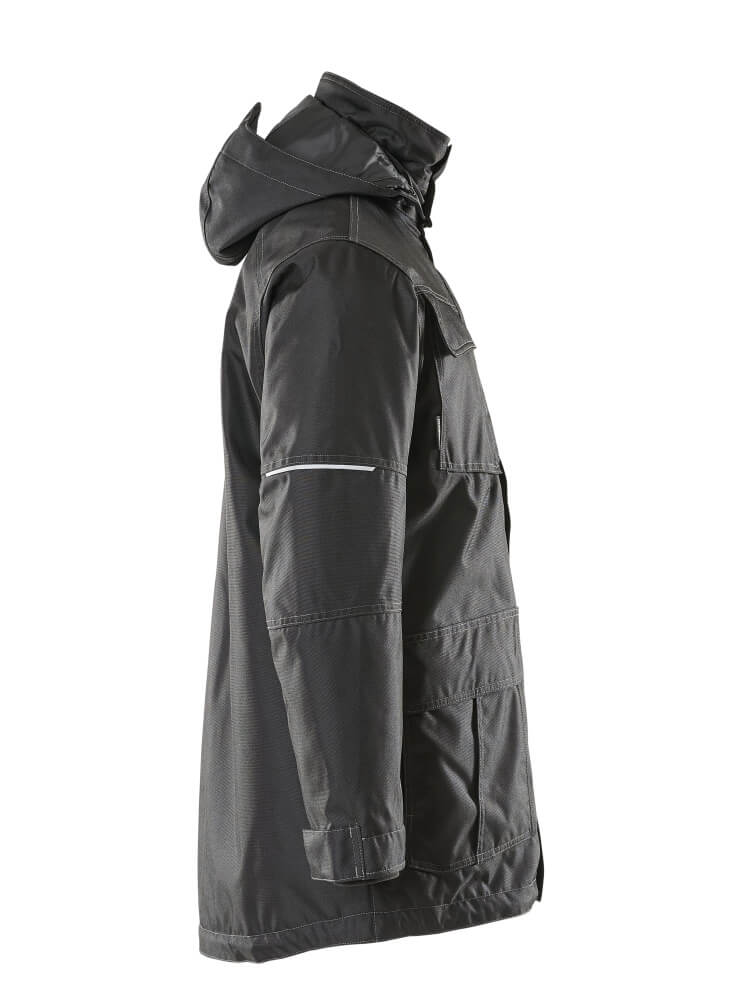 Atmungsaktiv, wind- und wasserdicht. Nähte sind verklebt. Futter aus Kunstpelz mit Reißverschluss herausnehmbar. Kapuze ist abnehmbar, gefüttert und mit verstellbaren Elastikschnüren versehen. Innenkragen aus weichem, strapazierfähigem Material. Verschluss mit Zwei-Wege-Reißverschluss, Wetterschutzleiste und Druckknöpfen. Reißverschlusstasche unter der Wetterschutzleiste. Brusttaschen mit Patte und verdeckten Druckknöpfen. D-Ring. Ergonomisch geschnittene Ärmel ermöglichen hohe Bewegungsfreiheit. Harmonikataschen mit Patte und extra Taschen. Innentasche mit Klettverschluss. Rippenbündchen (verdeckt unter der Wetterschutzleiste) und Druckknopfverschluss an den Handgelenken. Gummizug in der Unterkante, regulierbar. Kontrastnähte. Reflexeffekte. OEKO-TEX® STANDARD 100. EN 343 3/1. EN 342 3/WP (2,01 clo)