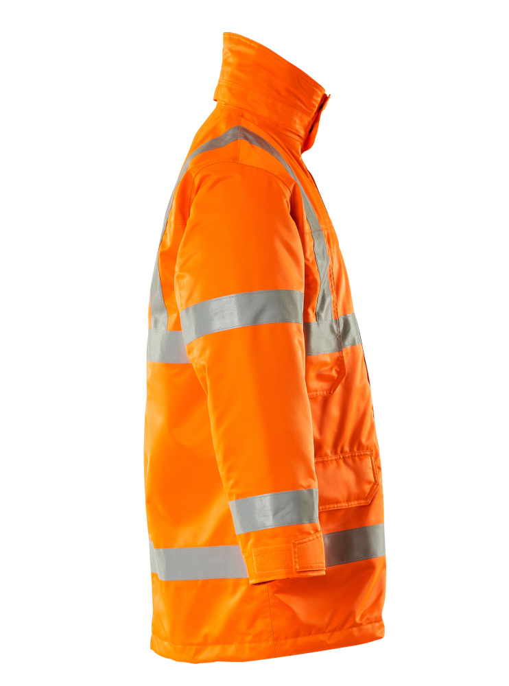Fluoreszierend, mit Reflexschulterstreifen und waagerechten Reflexen. Atmungsaktiv, wind- und wasserdicht. Nähte sind verklebt. Futter aus Stepp mit Reißverschluss herausnehmbar. Verschluss mit Zwei-Wege-Reißverschluss, doppelter Wetterschutzleiste und verdeckten Druckknöpfen. Reißverschlusstasche unter der Wetterschutzleiste. Brusttaschen mit Reißverschluss. D-Ring. Vordertaschen mit Patte und Druckknopfverschluss. Innentasche mit Klettverschluss. Zugband in der Unterkante. Rippenbündchen (verdeckt unter der Wetterschutzleiste) und Klettverschluss an den Handgelenken. Ergänzen Sie das Produkt mit einer Kapuze, MASCOT® MacCall (siehe MASCOT® COMPLETE). OEKO-TEX® STANDARD 100. EN ISO 20471 - Klasse 3. Hi-Vis Gruppe A. EN 343 3/1 Das Produkt ist zertifiziert, dass dieses mit einem Logo von 0,3800m² versehen werden darf. Dieses zulässige Areal darf nicht überschritten werden. Das Logo auf der Vorder- und Rückseite darf jeweils maximal 50% des gesamten Logoareals betragen, um die Zertifizierung gemäß EN ISO 20471 beizubehalten. Hinweis: Der aufgeführte Bereich ist lediglich ein Leitfaden dazu, wie viel Platz für die Logoplatzierung zur Verfügung steht. Um die Hi-Vis-Klasse des Produkts gemäß EN ISO 20471 beizubehalten, müssen die Anweisungen zur Logogröße eingehalten werden.