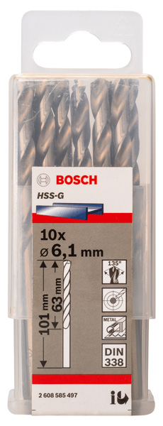 PRO Metal HSS-G Spiralbohrer, 6,1 x 63 x 101 mm, 10-tlg.