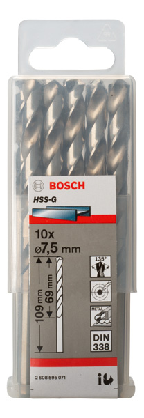 PRO Metal HSS-G Spiralbohrer, 7,5 x 69 x 109 mm, 10-tlg.