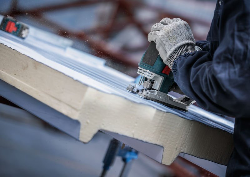 Herausragende Lebensdauer beim Schneiden von Metall-Sandwich! Bi-Metall Blatt: Kombiniert harte Zähne mit flexiblem Blattkörper Das Schneiden von Metall-Sandwich erfordert ein Stichsägeblatt, das nicht nur stark, sondern auch lang genug ist, um hartes, mehrschichtiges Material zu durchtrennen. Wie das langlebige PRO Metal Sandwich T718BF. Es hat eine Länge von 180 mm, damit du problemlos Metall-Sandwiches durchtrennen kannst – immer und immer wieder. Das PRO Metal Sandwich T718BF Stichsägeblatt ist eine gute Wahl für Bauarbeiter und Installateure, die ein langlebiges Stichsägeblatt zum Schneiden von Metall-Sandwich benötigen. Es verfügt über eine Zahnleiste aus Schnellarbeitsstahl (HSS) und einen elastischeren Körper aus Kohlenstoffstahl (HCS), um sicherzustellen, dass es beim Schneiden mehrschichtiger Platten nicht bricht. Die gefrästen, gewellten Zähne mit feiner Zahnteilung sind so konzipiert, dass du gerade Schnitte in Werkstücken mit einer Dicke von bis zu 120 mm erzielen kannst.