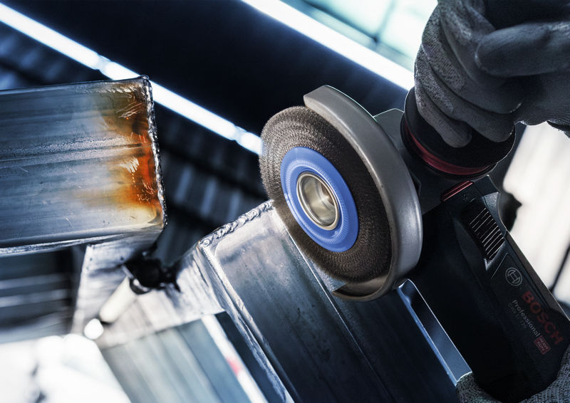 Lange Lebensdauer beim Reinigen von Stahl! Gewellter Premium-Draht für leichtere Reinigungsarbeiten Benötigst du eine langlebige Scheibenbürste zum Reinigen kleiner Metallflächen, Kanten und in Rillen? Dann ist die PRO Metal clean die richtige Wahl. Sie wurde mit hochwertigem gewellten Draht versehen, damit du leichte Reinigungsarbeiten erledigen kannst – immer und immer wieder. Die PRO Metal clean Scheibenbürste wurde mit gewellten Premium-Draht hergestellt, damit du auf kleinen Metallflächen, an Kanten und in Rillen ein feines Finish erhältst. Sie hilft dir, Rost, alte Farbe und Verfärbungen an Schweißnähten zu entfernen. Du kannst sie auch für alle Schrupp- und Mattschleifarbeiten verwenden. Die Scheibenbürste ist eine langlebige Ergänzung für jede Metallwerkstatt.