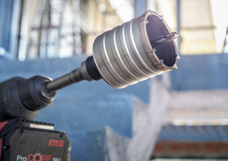 Schnelles Schneiden tiefer Löcher in Beton! Hochwertiges, zähes Wolfram-Carbide sorgt für Festigkeit und Haltbarkeit Das Schneiden tiefer Löcher für Rohre und Schaltkästen in Beton, Ziegel und Kalkstein kann eine schwierige und zeitaufwändige Arbeit sein. Der PRO SDS max-5 Core Cutter ist die Lösung. Er wurde für Elektriker, Sanitärinstallateure und Heizungs- und Klimaanlagen-Monteure entwickelt, die tiefe Löcher schneller und einfacher schneiden möchten. Die PRO SDS max-5 Core Cutter verfügt über starke Carbide-Zähne, die für einen außergewöhnlichen Schneidfortschritt und eine gute Haltbarkeit sorgen. Die Zähne sind asymmetrisch und passen sich dem Durchmesser der Bohrkrone an, sodass du tiefe und präzise Löcher für Schaltkästen und Rohre einfacher schneiden kannst. Die beiden Spiralnuten der Bohrkrone entfernen Staub effektiv. Dieses einteilige Zubehör bietet eine maximale Kraftübertragung von deiner Maschine auf die Bohrkrone.