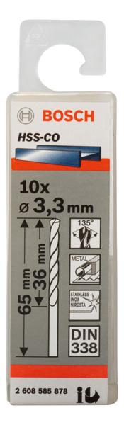 PRO Stainless Steel HSS-Co Spiralbohrer, 3,3 x 36 x 65 mm, 10-tlg.