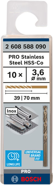 PRO Stainless Steel HSS-Co Spiralbohrer, 3,6 x 39 x 70 mm, 10-tlg.