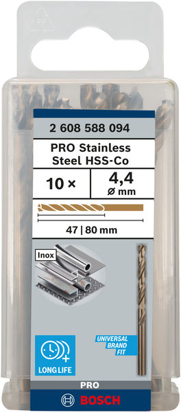 PRO Stainless Steel HSS-Co Spiralbohrer, 4,4 x 47 x 80 mm, 10-tlg.