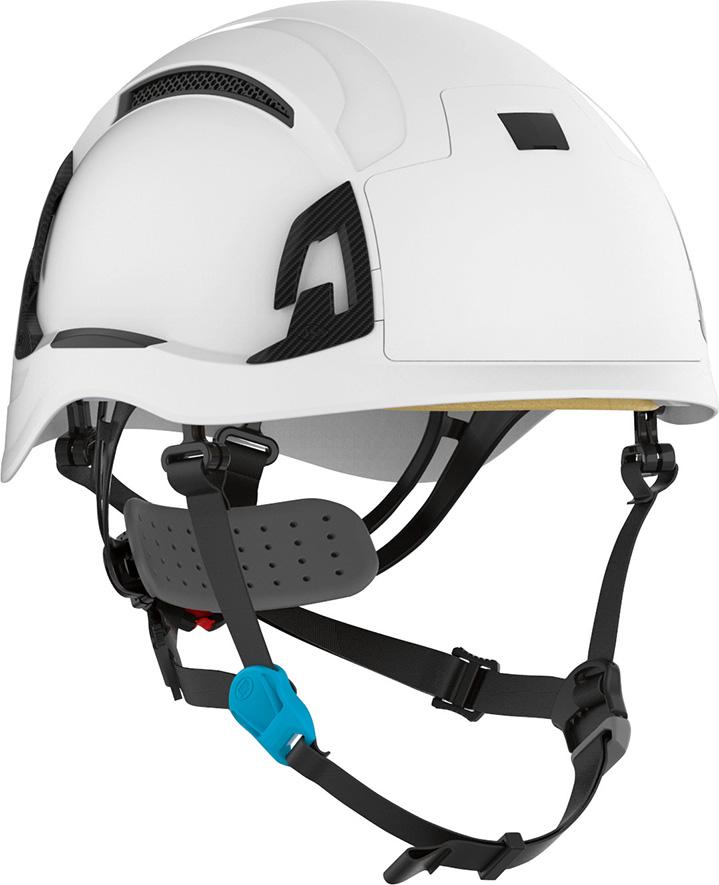 • 4-Punkt Kinnriemen, der so konzipiert ist, dass er auch unter Krafteinwirkung sicher bleibt und die Sicherheit bei einem Sturz maximiert
