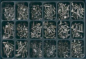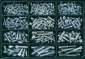 Ausführungen: H1: gerade H2: 45°-Winkel H3: 90°-Winkel • Oberfläche: verzinkt • Inhalt: ca. 225 Teile H1: M 6; M 8; M 10; M 6x1; M 8x1; M 10x1 H2: M 6x1; M 8x1; M 10x1 H3: M 6x1; M 8x1; M 10x1