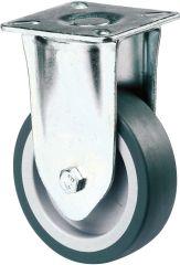 Diese Rollen lassen sich an verschiedensten Transportgeräten anbringen und sind für weiche Böden geeignet. • Gehäuse: Stahlblech, verzinkt • Rad: Kunststoff • Lager: Gleitlager