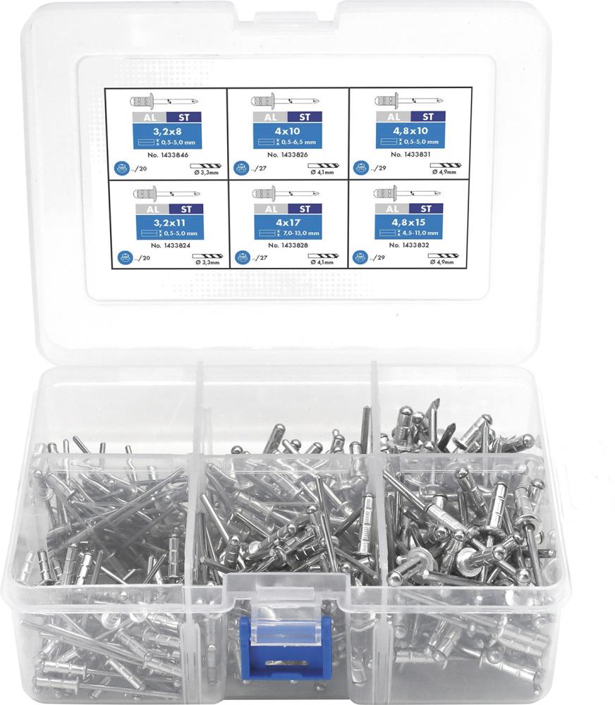 • Blindnietsortiment kompakt in in einer praktischen Box