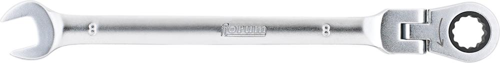 • Matt verchromt • Chrom-Vanadium-Stahl • Geschmiedet • Griffig geprägter Profilschaft • Mit Gelenk auf der Ringseite, um 180° schwenkbar • Maulstellung 15° abgewinkelt • 72-fach verzahnt