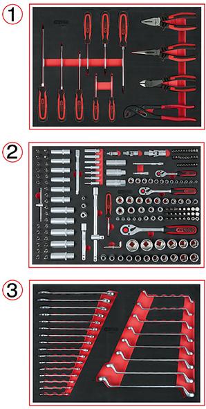 1 Werkzeugmodul Steckschlüssel 1/4", 3/8" + 1/2", 179-teilig, bestehend aus: