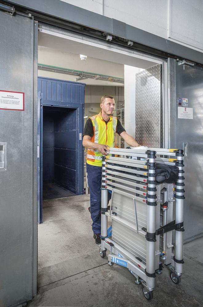 • Mobiles, teleskopierbares Gerüst mit Klemmschutz